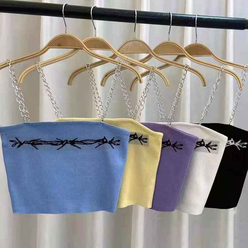 This piece has a rock feel with its barbed wire pattern and chain shoulder strap.