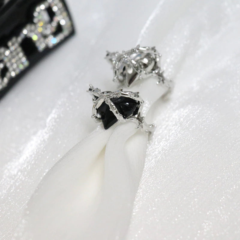 A ring with a heart motif wrapped around barbed wire.