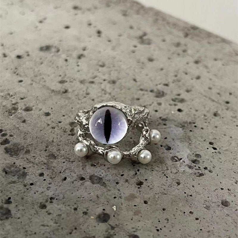 A ring with an EYE design cabochon motif and mini pearl parts.