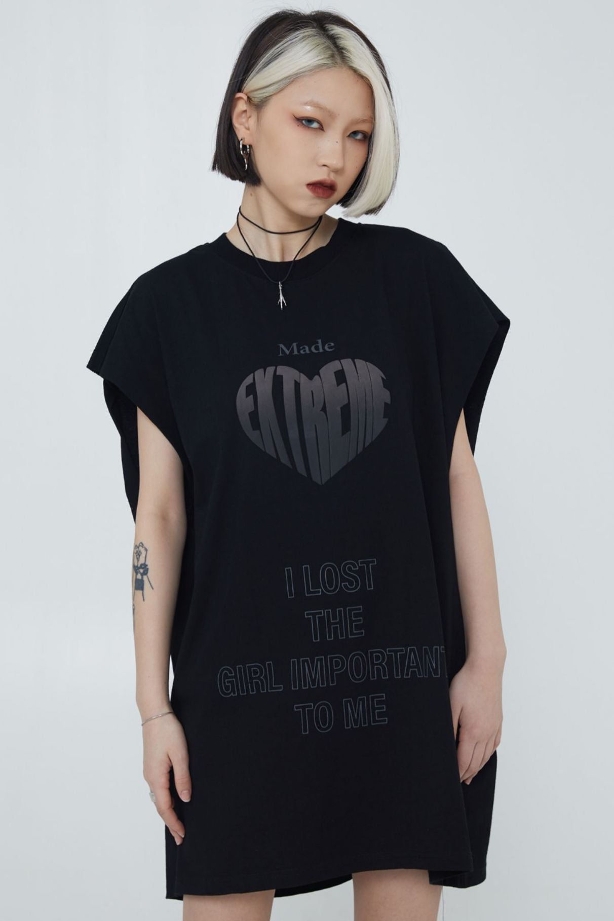 Long tank top with graphic print.