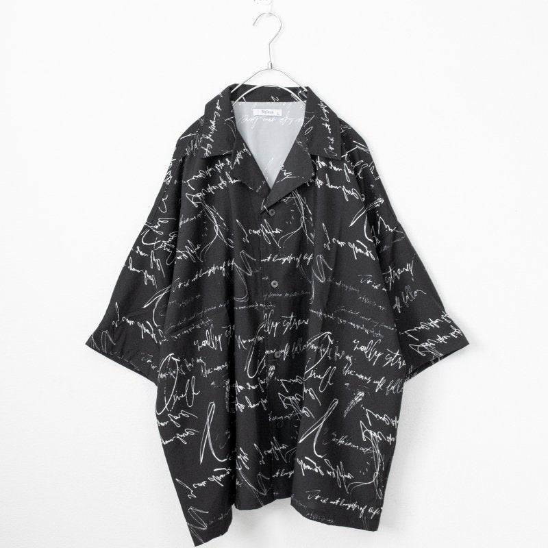 Men's open collar all-over print big silhouette short sleeve shirt BLACK