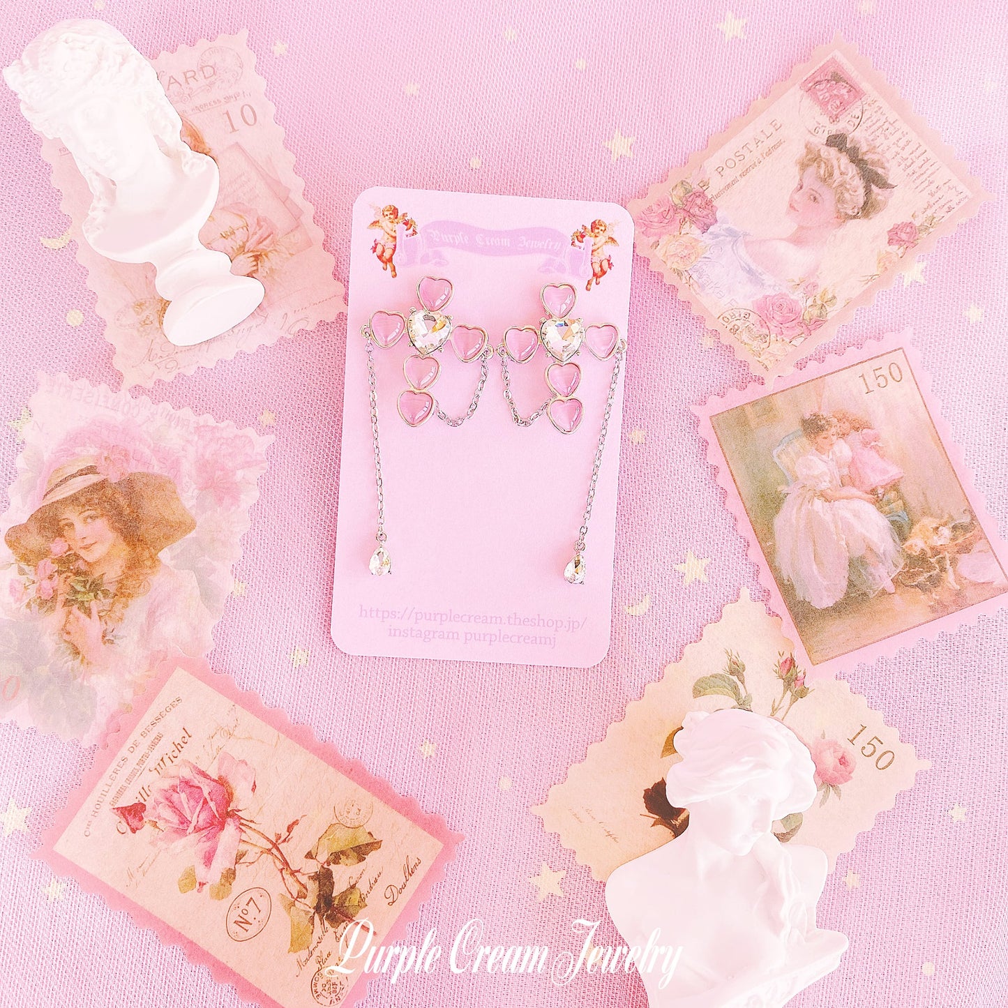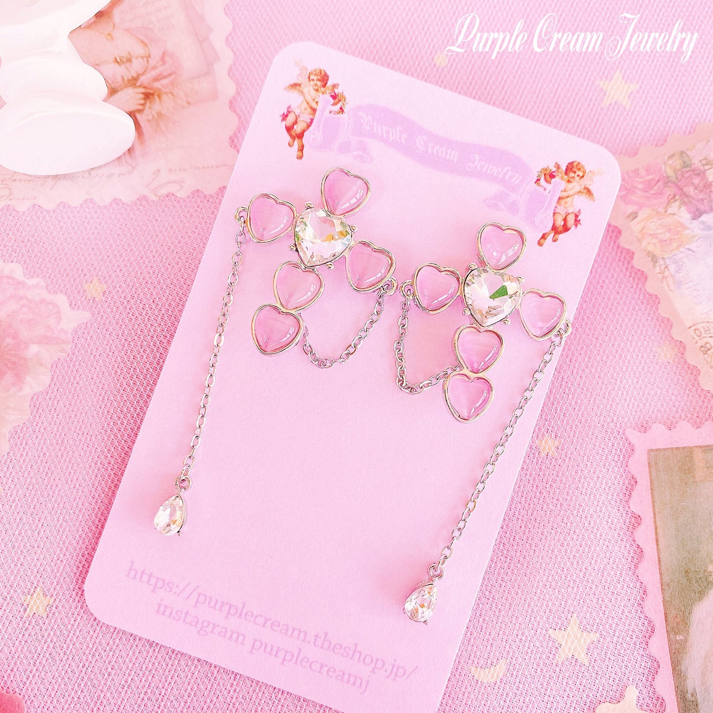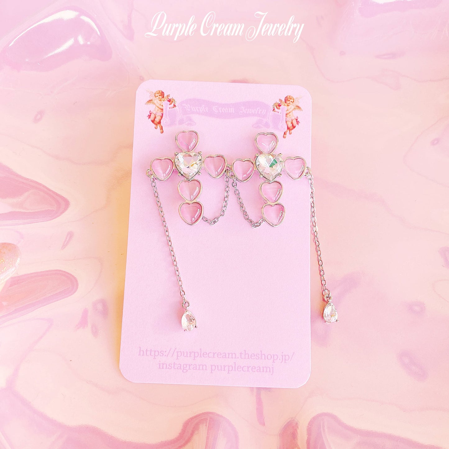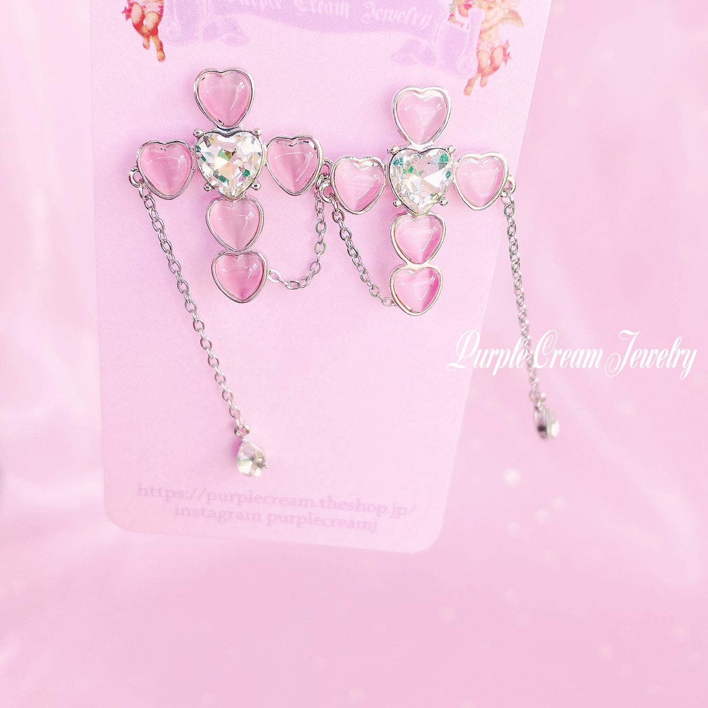 Pink heart-shaped cross earrings