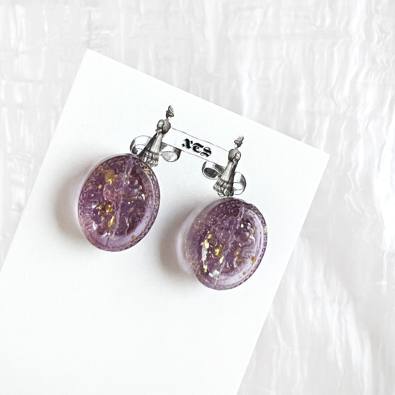 ROSE RETRO GLASS STUD EARRINGS PURPLE