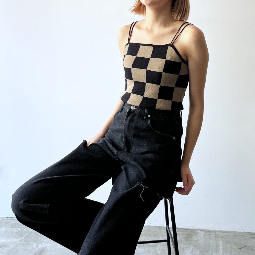 sourire knit block check camisole BLACK BROWN