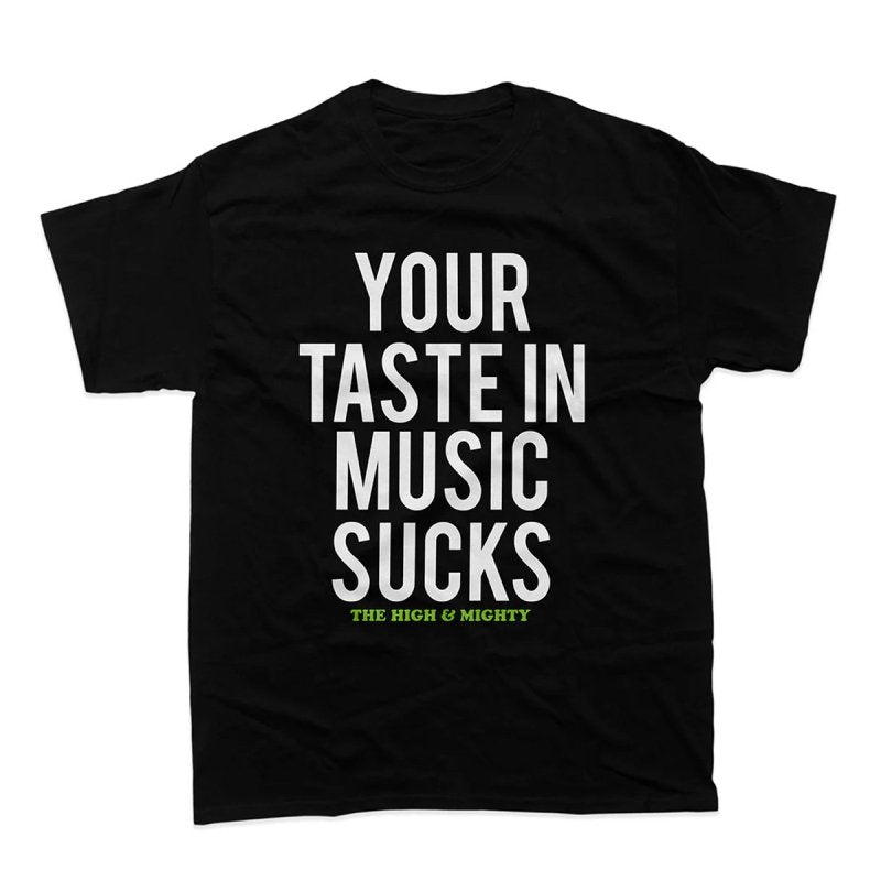 The text on the front reads something like "Your taste in music is awful"! "If this offends you... it's probably about you."