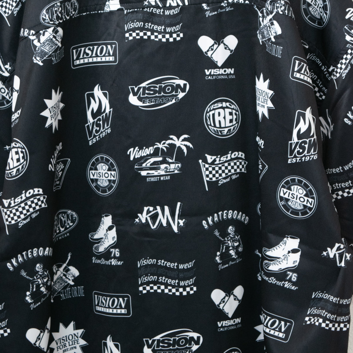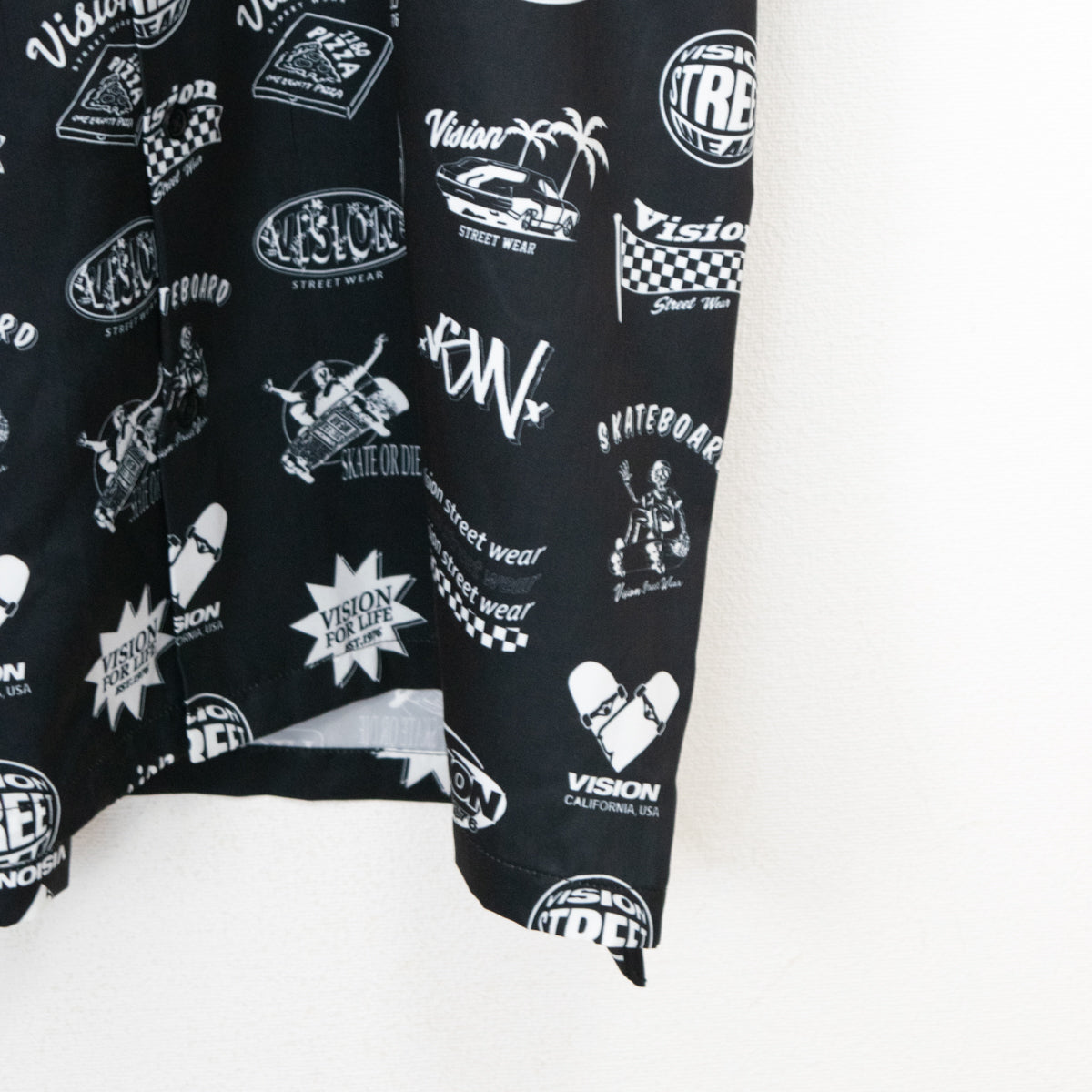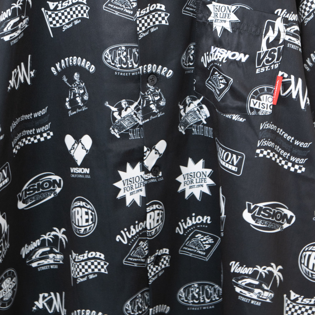 VISION STREET WEAR Graphic print open collar short sleeve shirt BLACK