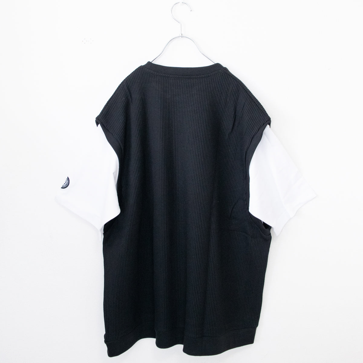 An ensemble of a waffle fabric vest and an inner T-shirt.
