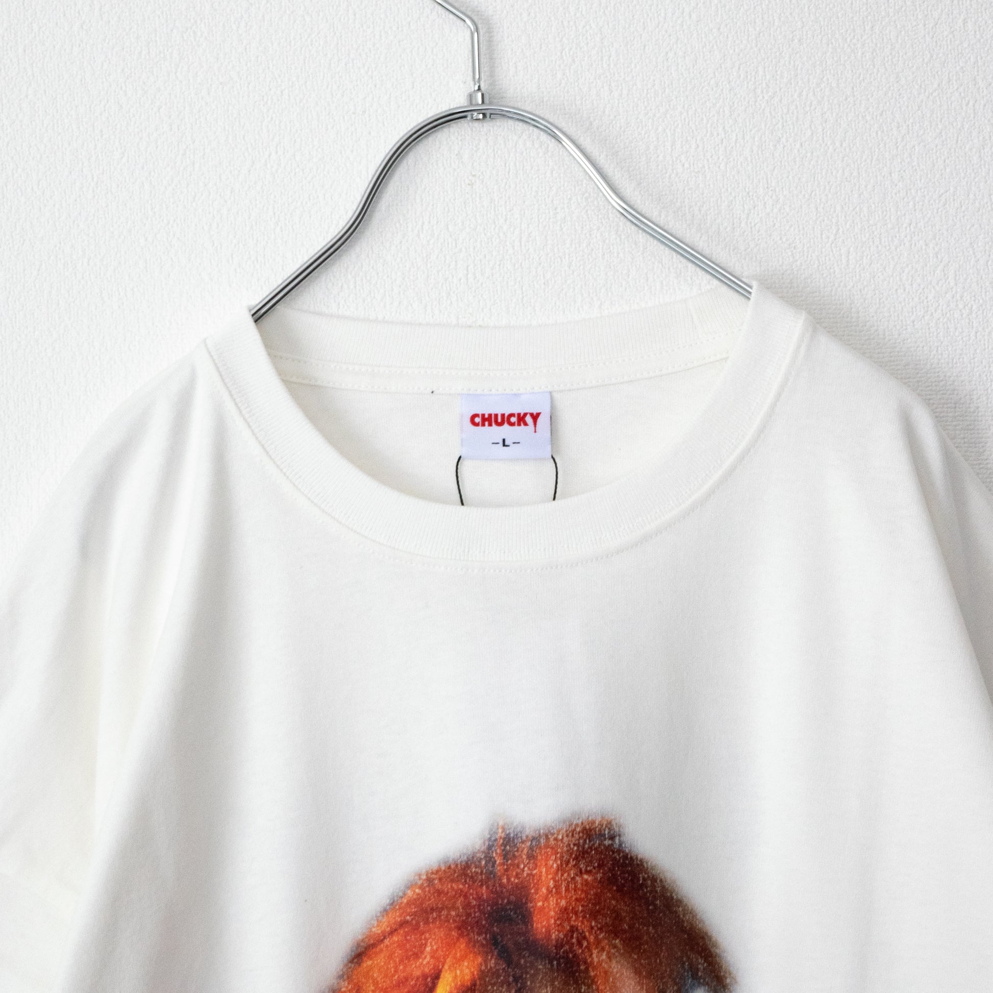 "Chucky" from the "Child's Play" movie series is now available as an impactful face T-shirt!
