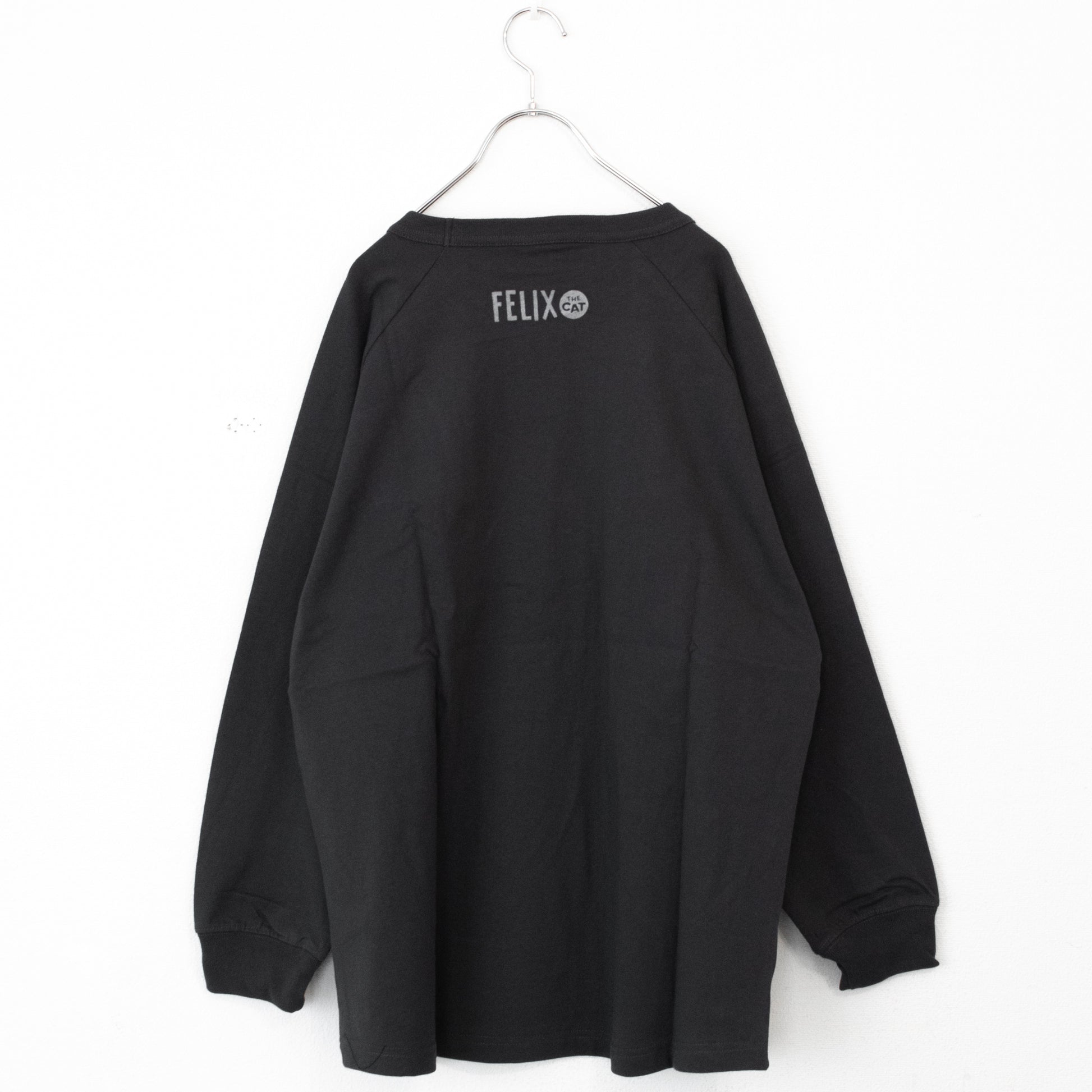 FELIX THE CAT Raglan Flocked Long T-Shirt in Charcoal