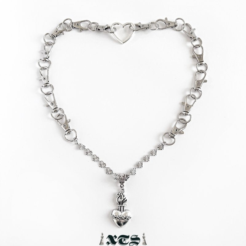XTS Heart Corazon Chain Necklace SILVER TS0293