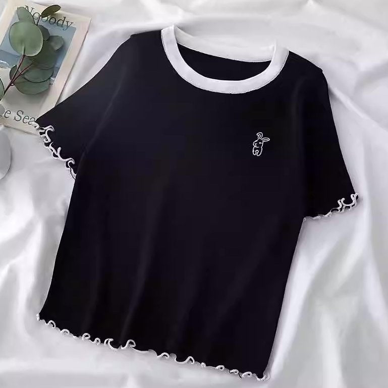 うさぎ刺繍のシンプルメロートップス。