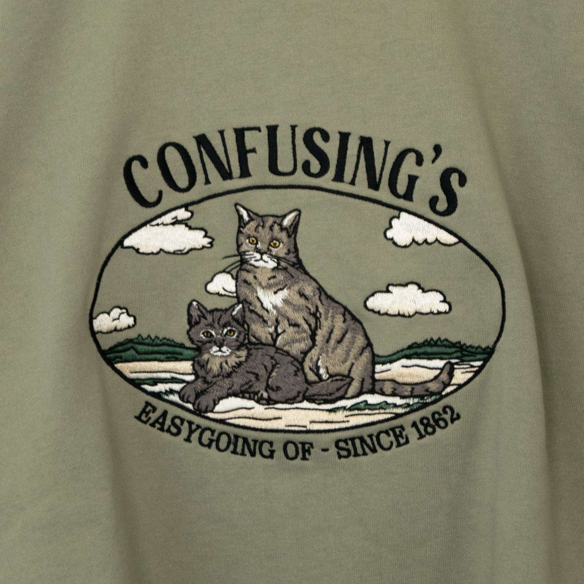 CAT ネコ 刺繍 スウェットトップ GREEN