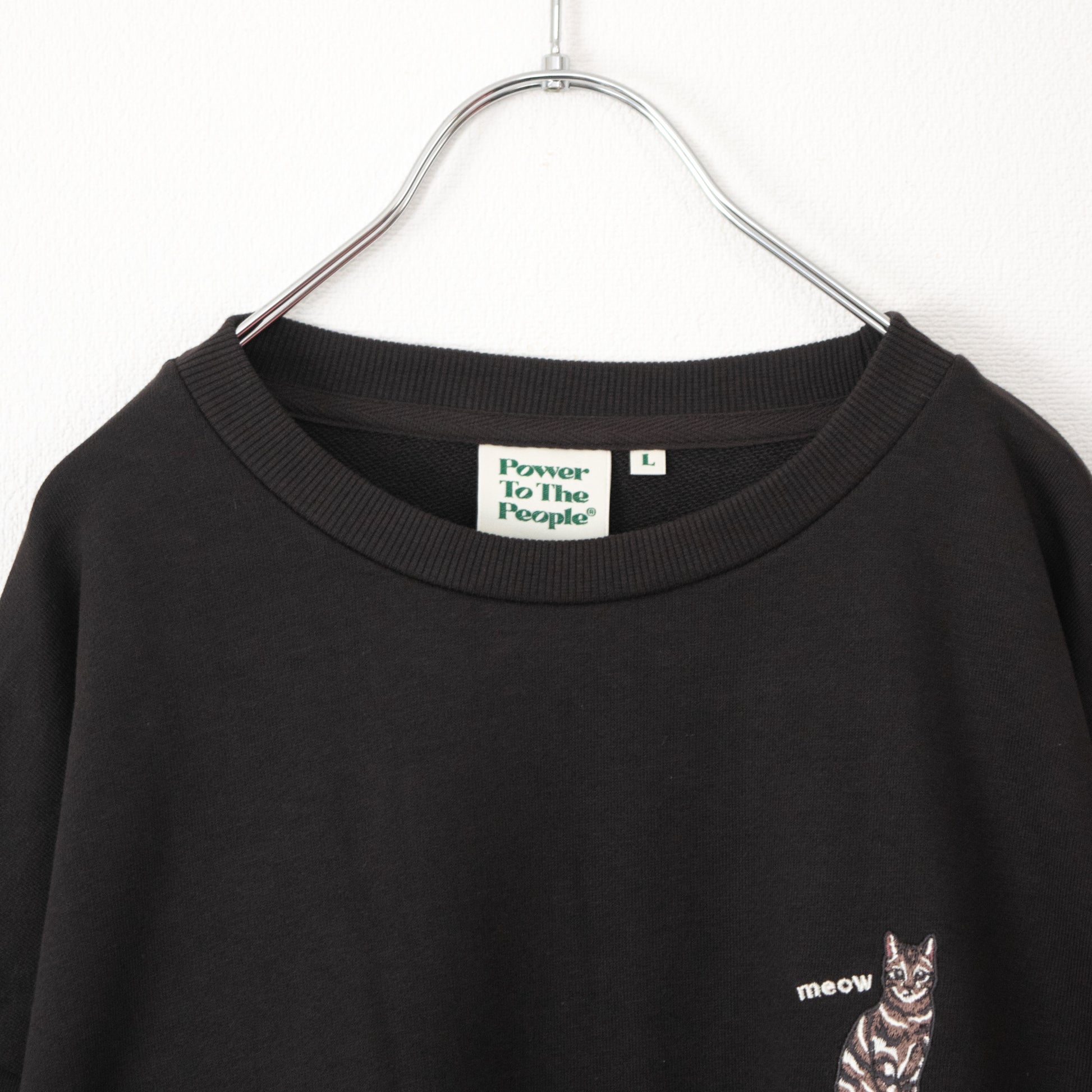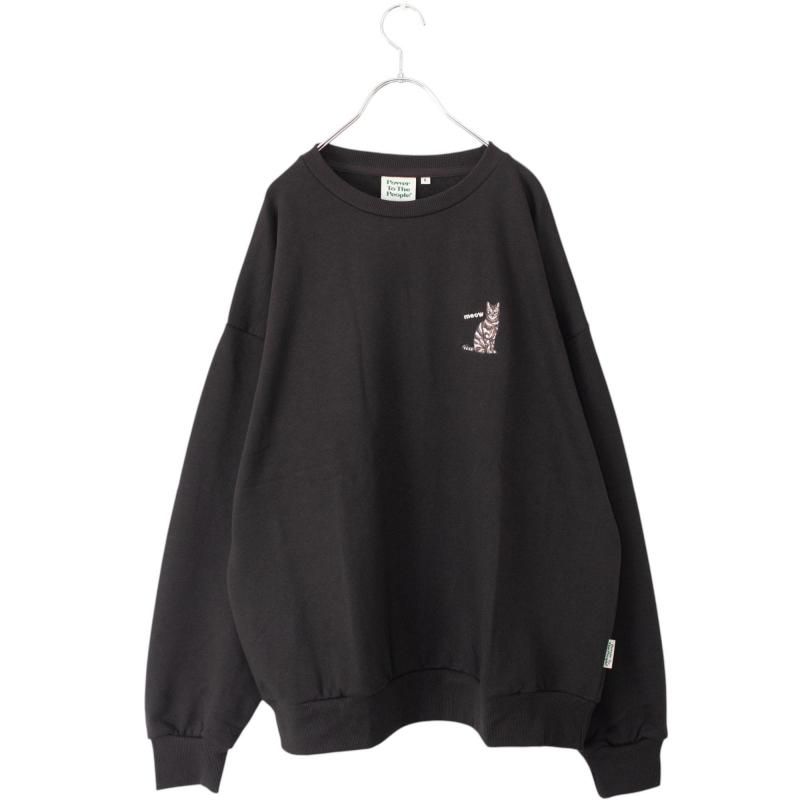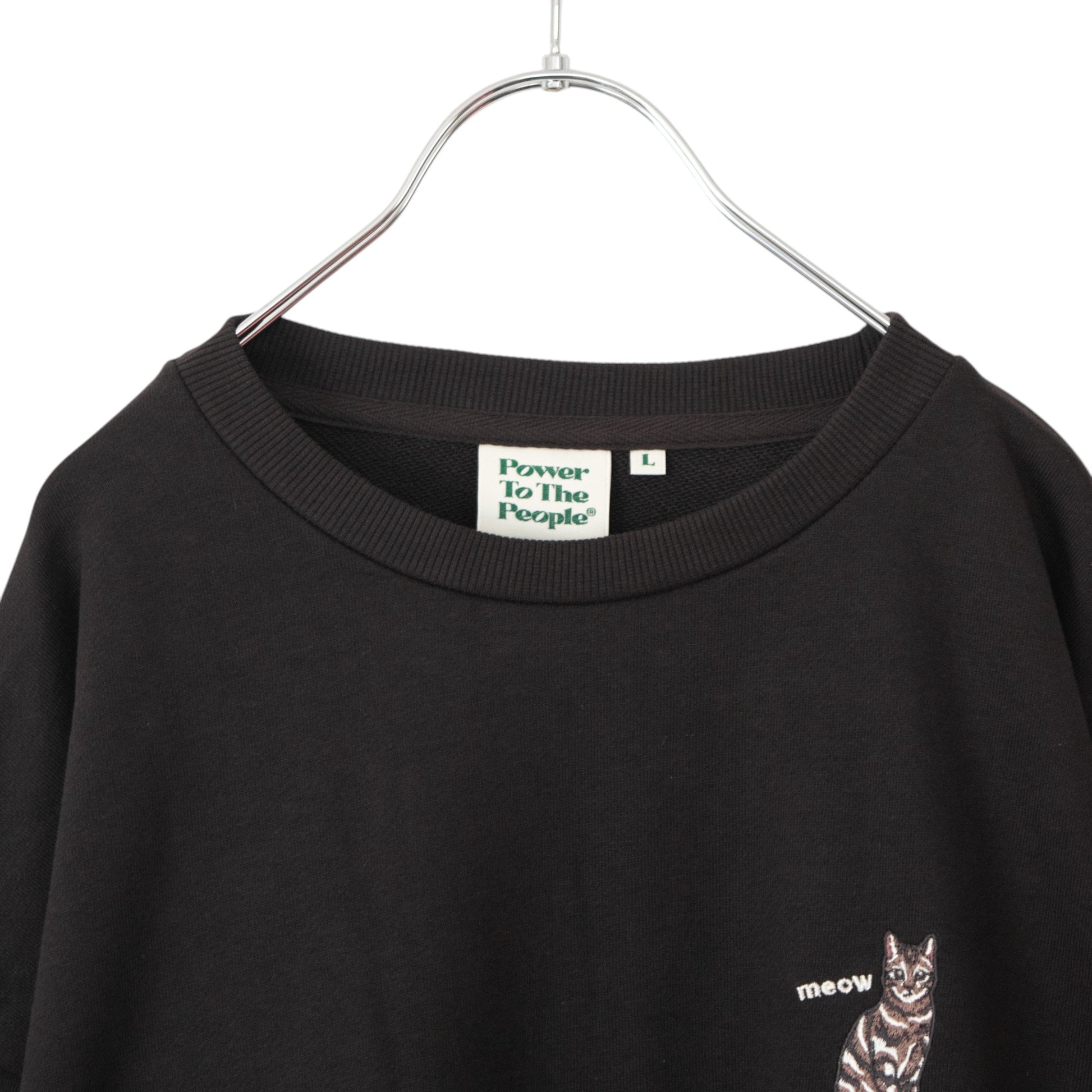 CAT 猫 ワンポイント刺繍 スウェットトップ CHARCOAL