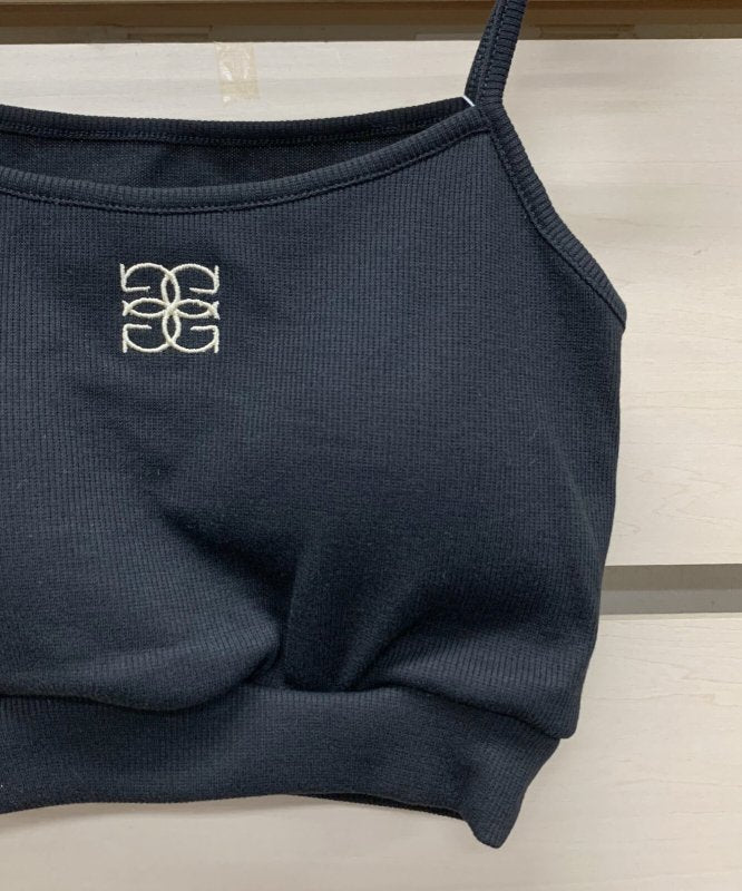 ロゴ 刺しゅう テレコ素材 カップ付キャミソール BLACK