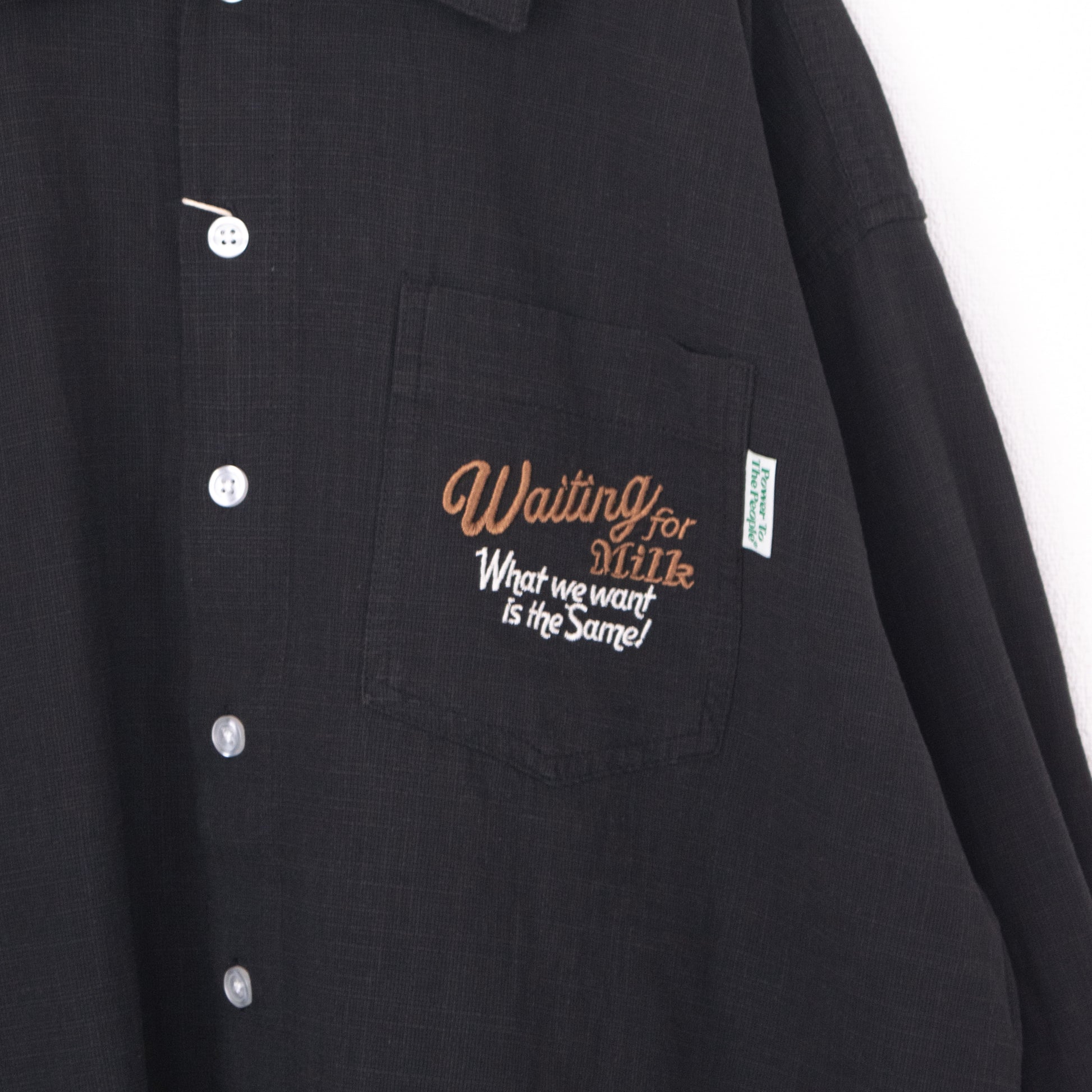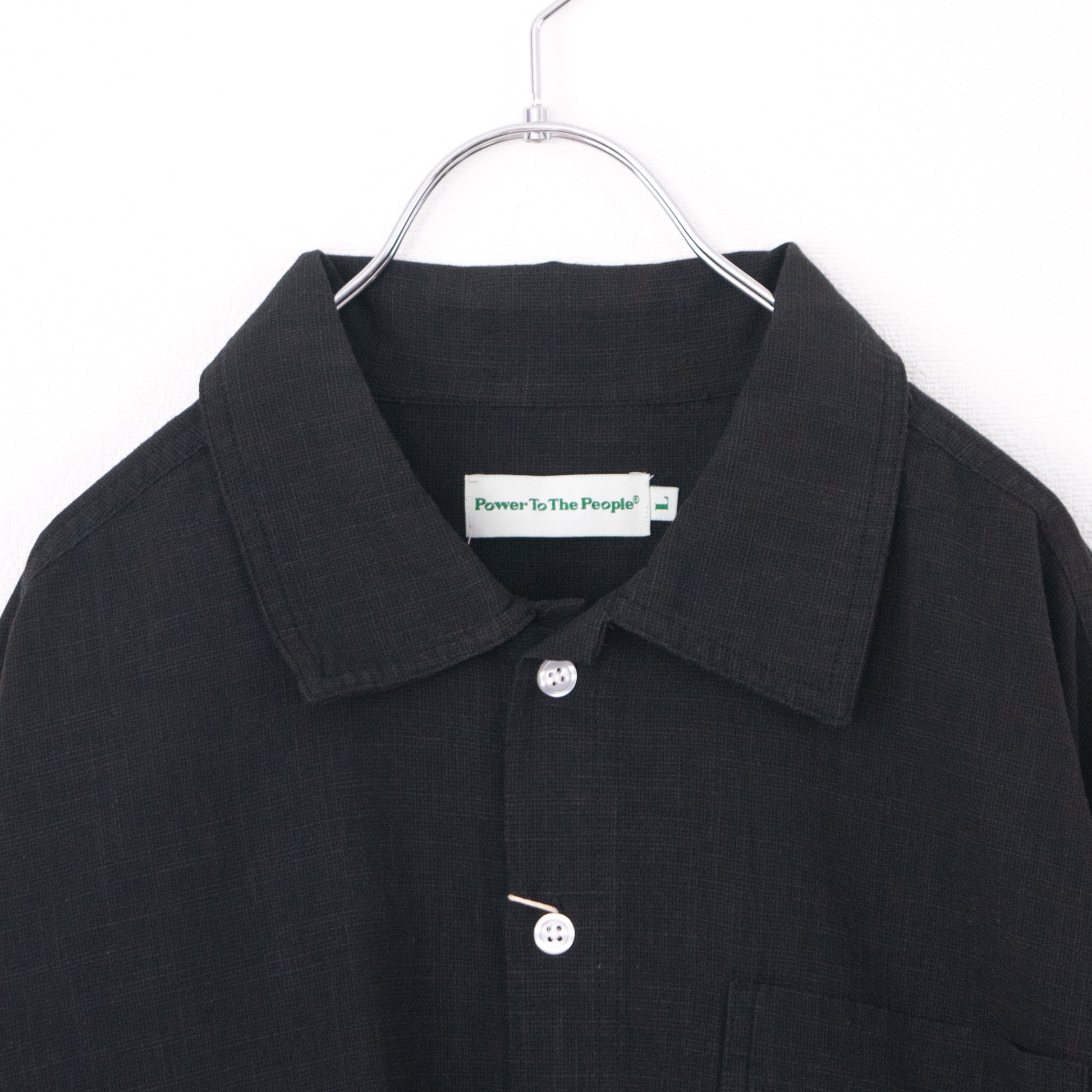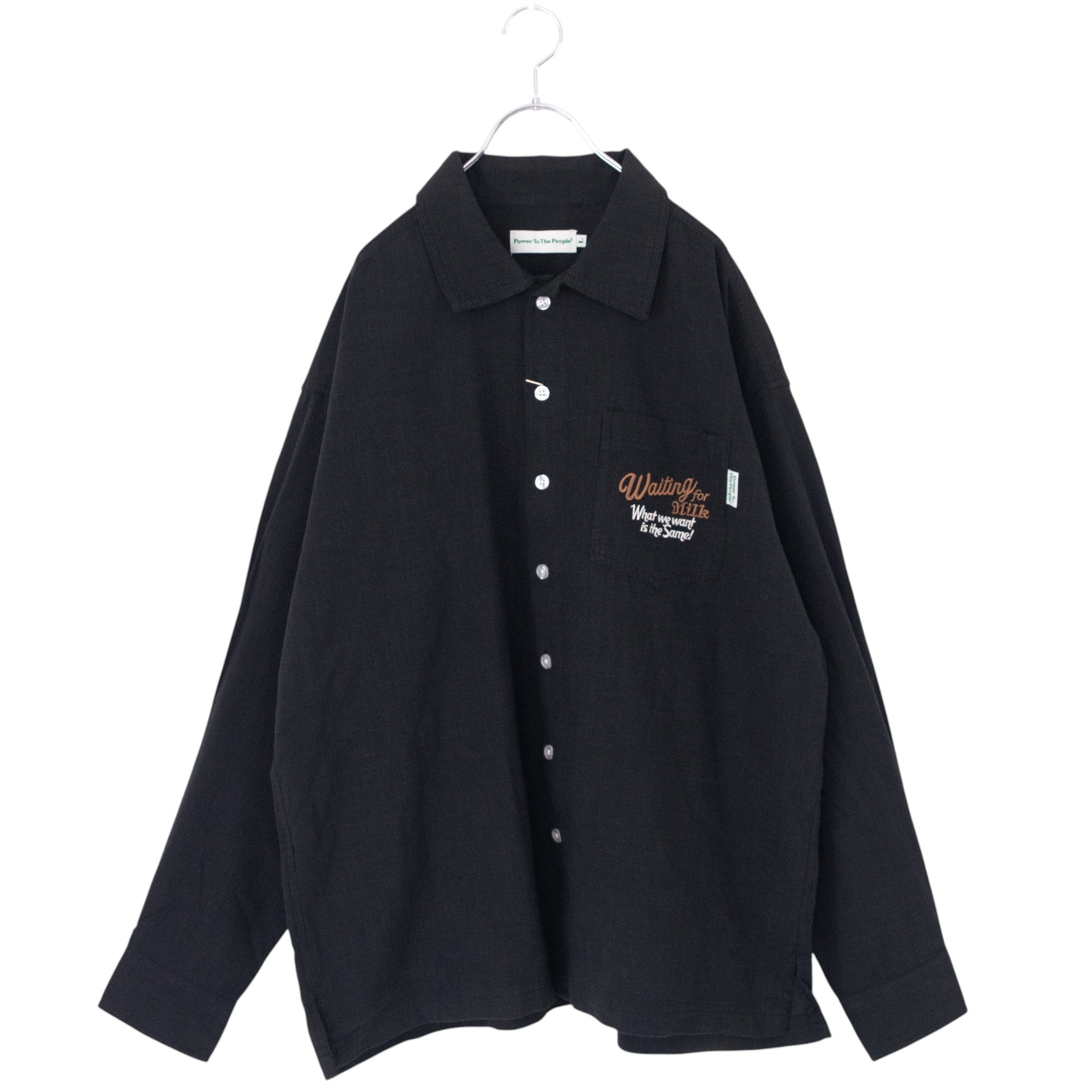 POWER TO THE PEOPLE CAT 麻ライク 刺繍 シャツ BLACK