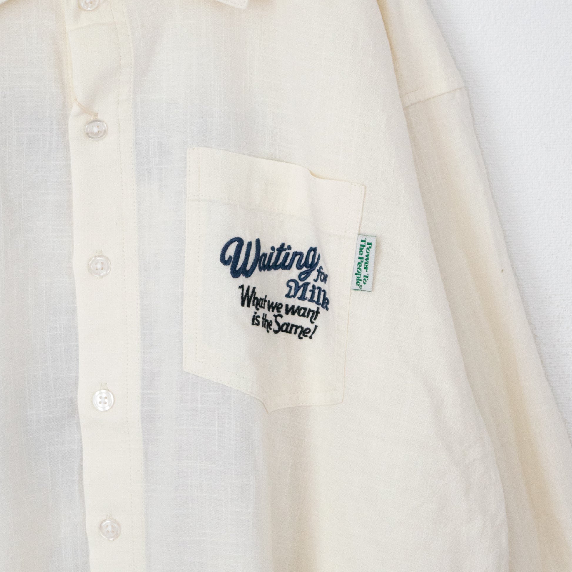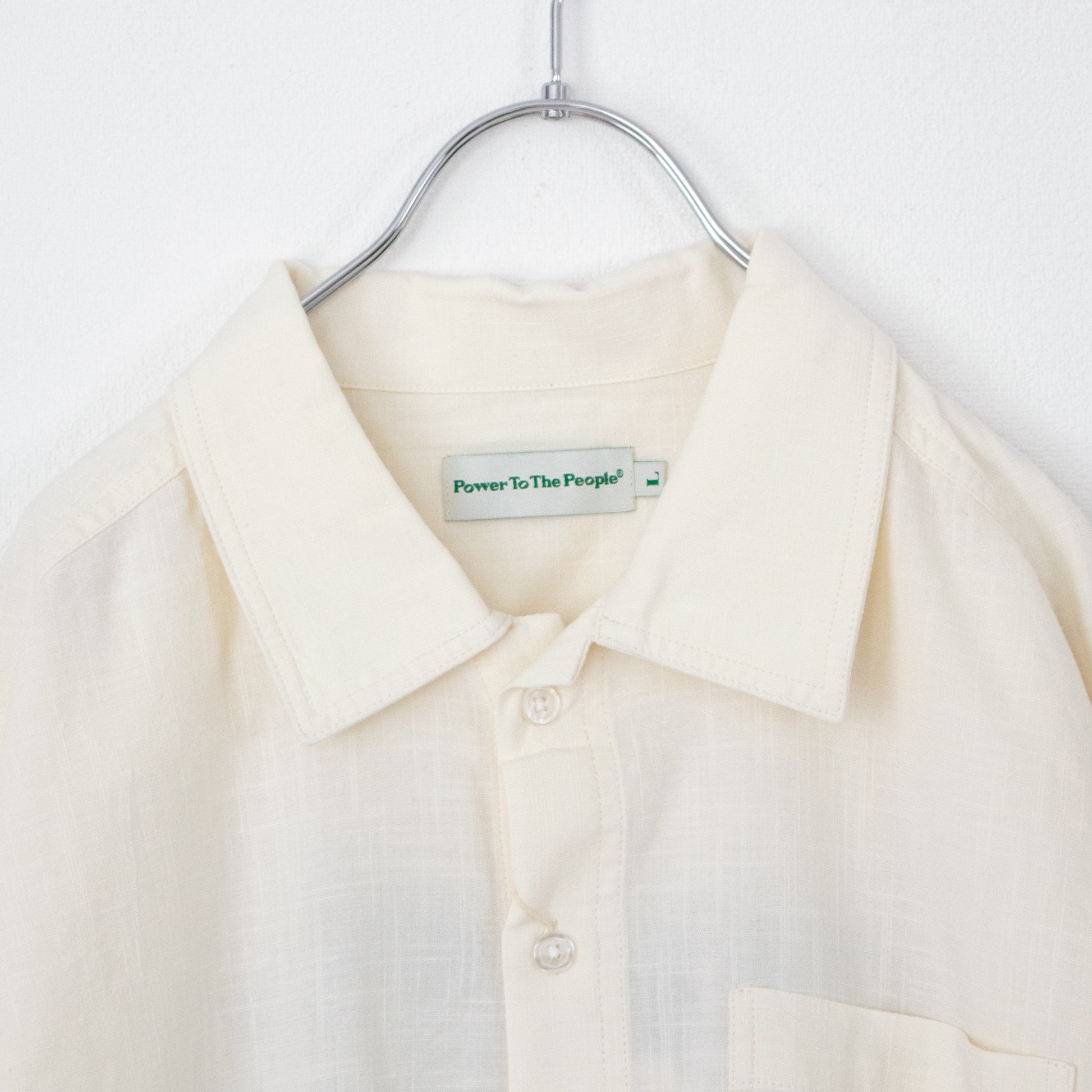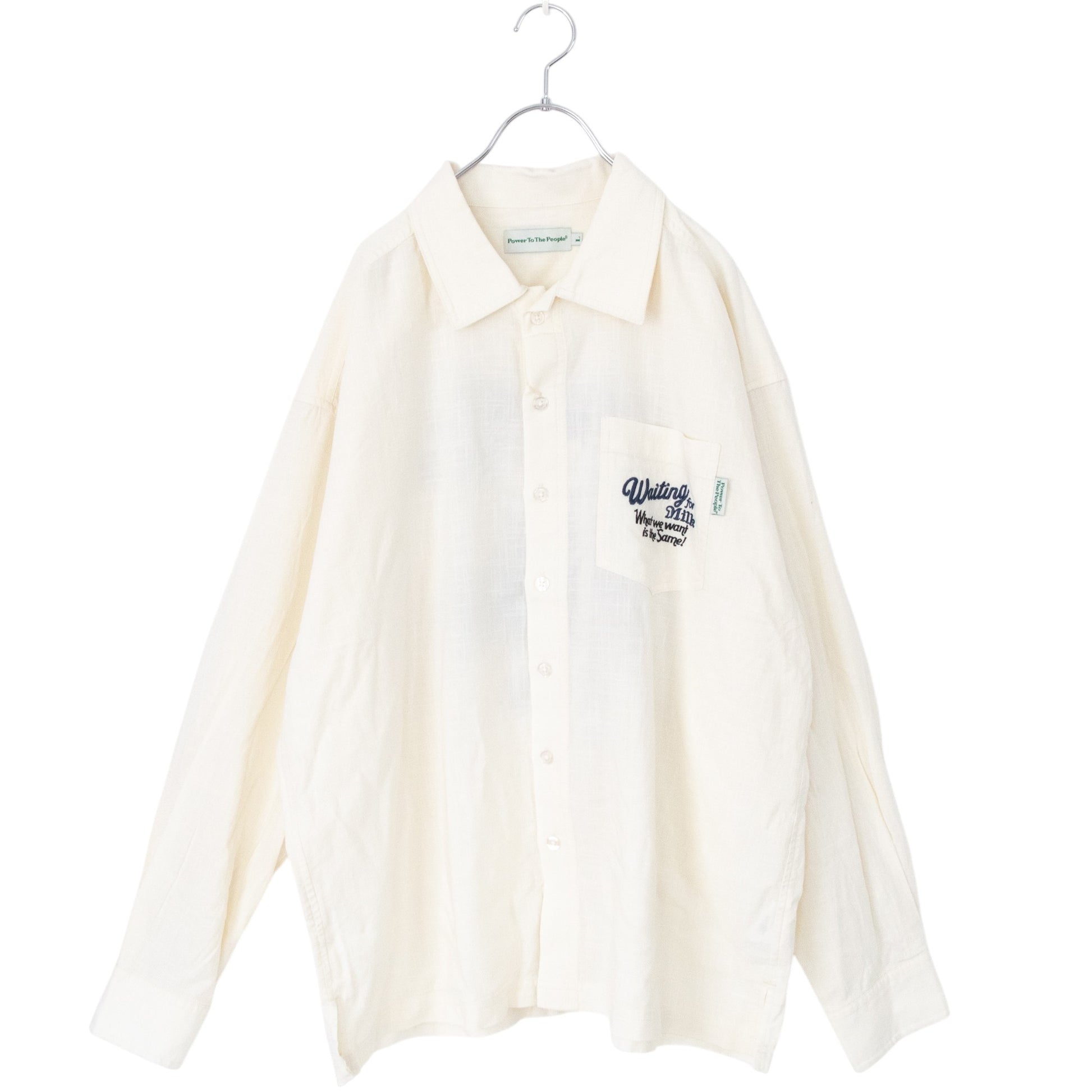POWER TO THE PEOPLE CAT 麻ライク 刺繍 シャツ WHITE