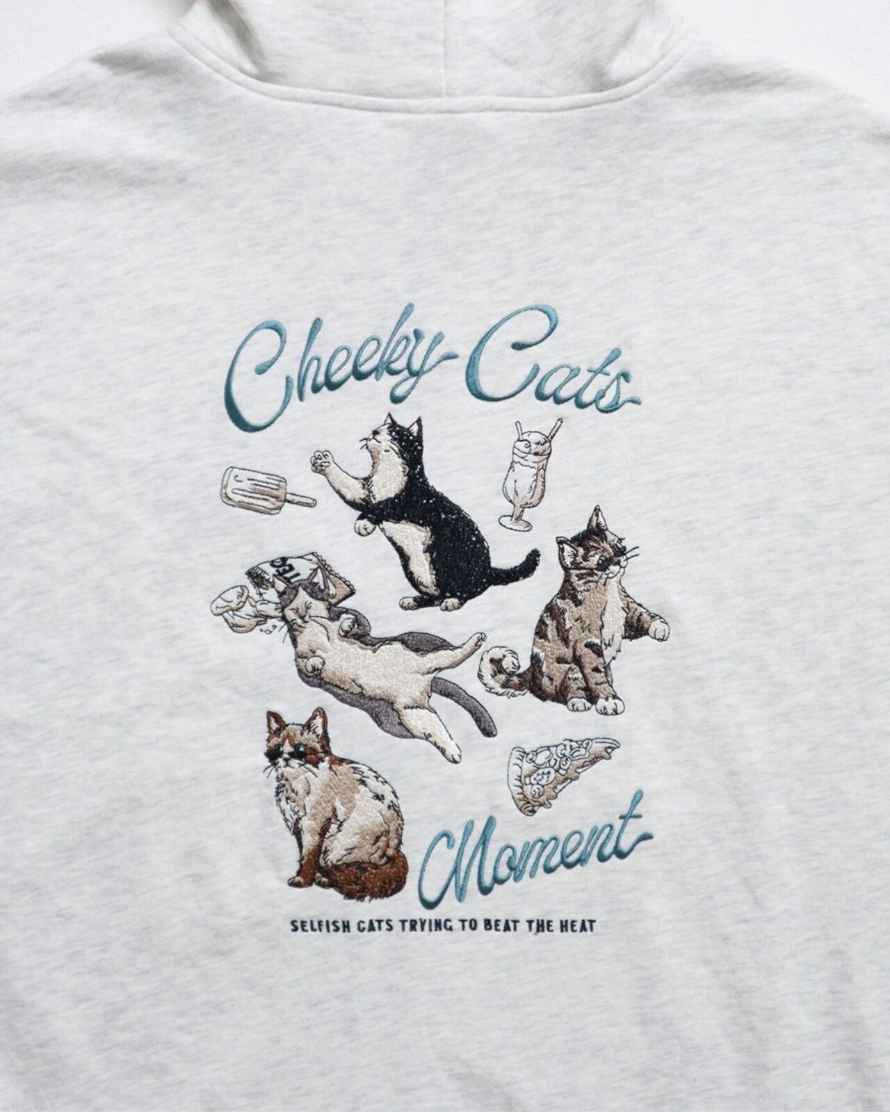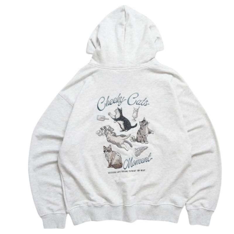 チルアウトな猫柄がキュートな裏毛ジップパーカー