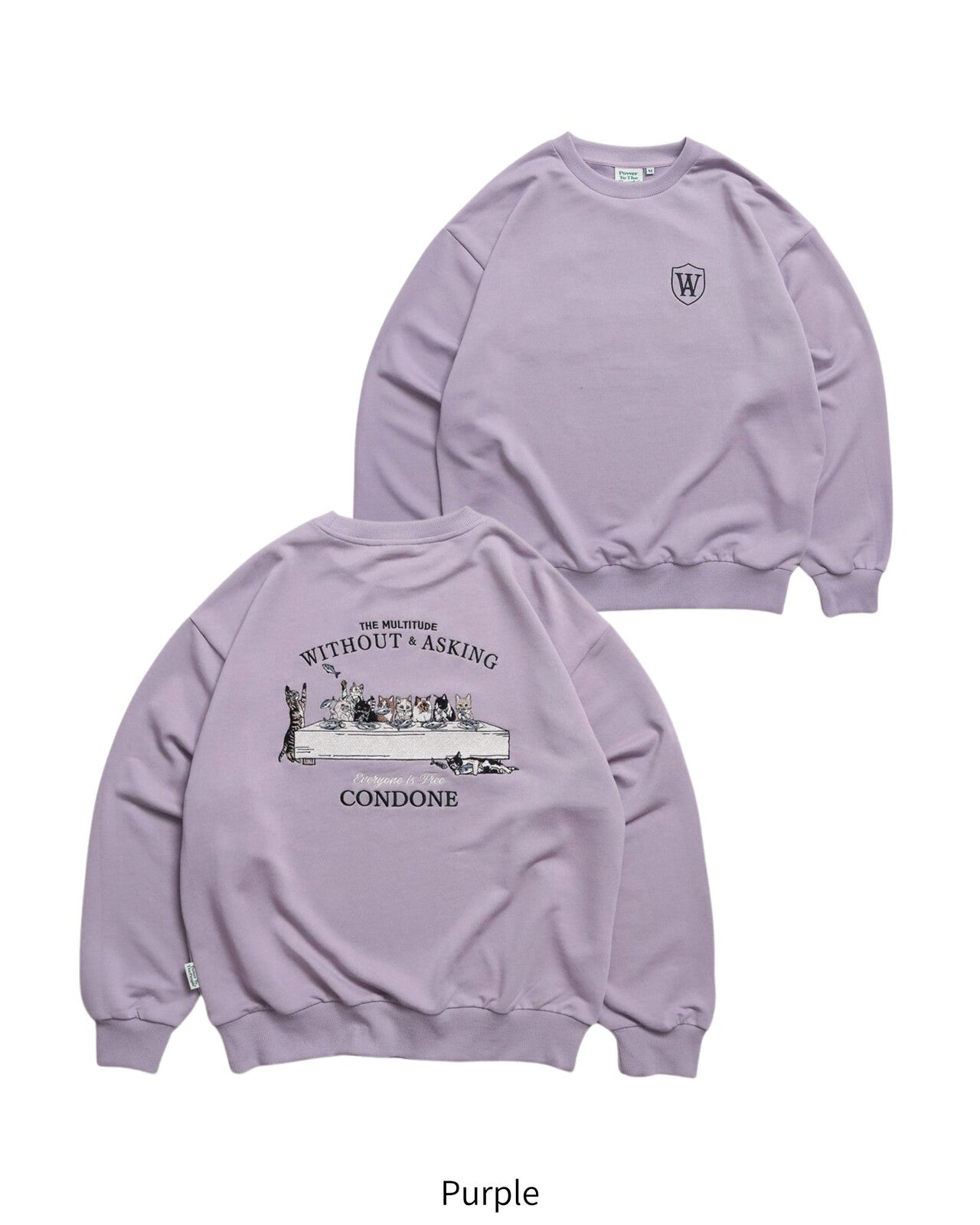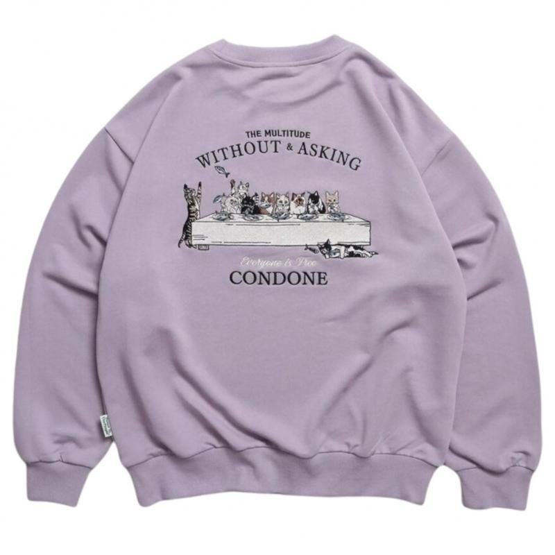 POWER TO THE PEOPLE ディナー猫刺繍スウェット PURPLE